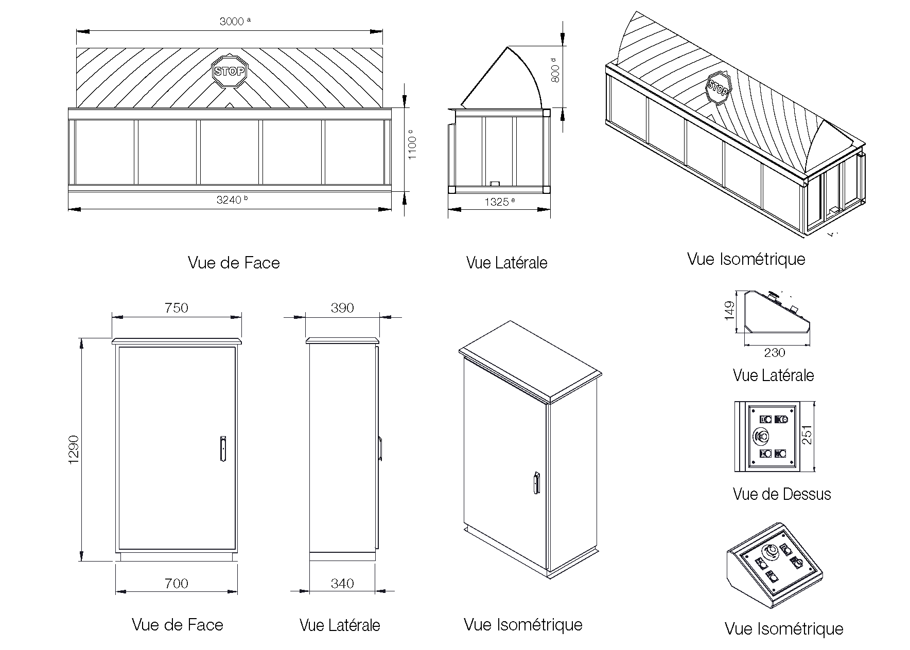 * Les dimensions sont données pour une largeur de blocage de 4000 mm, une hauteur d'obstacle de 800 mm et une armoire de commande avec configuration standard.