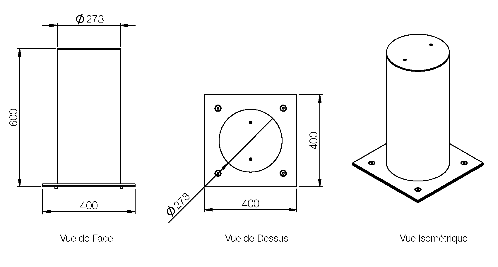 | DIAMÈTRE DE LA BORNE | 273 mm |