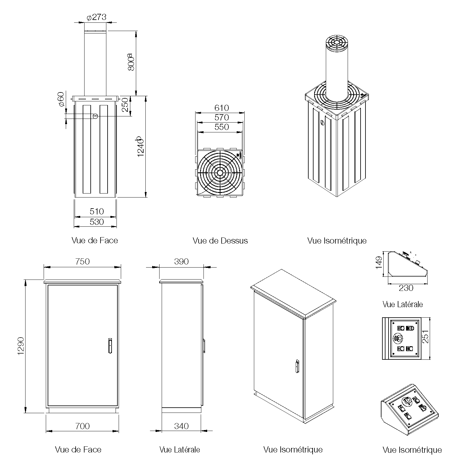 * Les mesures ci-dessus concernent une armoire extérieure pour une configuration standard à trois groupes. Sujet susceptible de changer en fonction de la conception ou des besoins du projet sans préavis