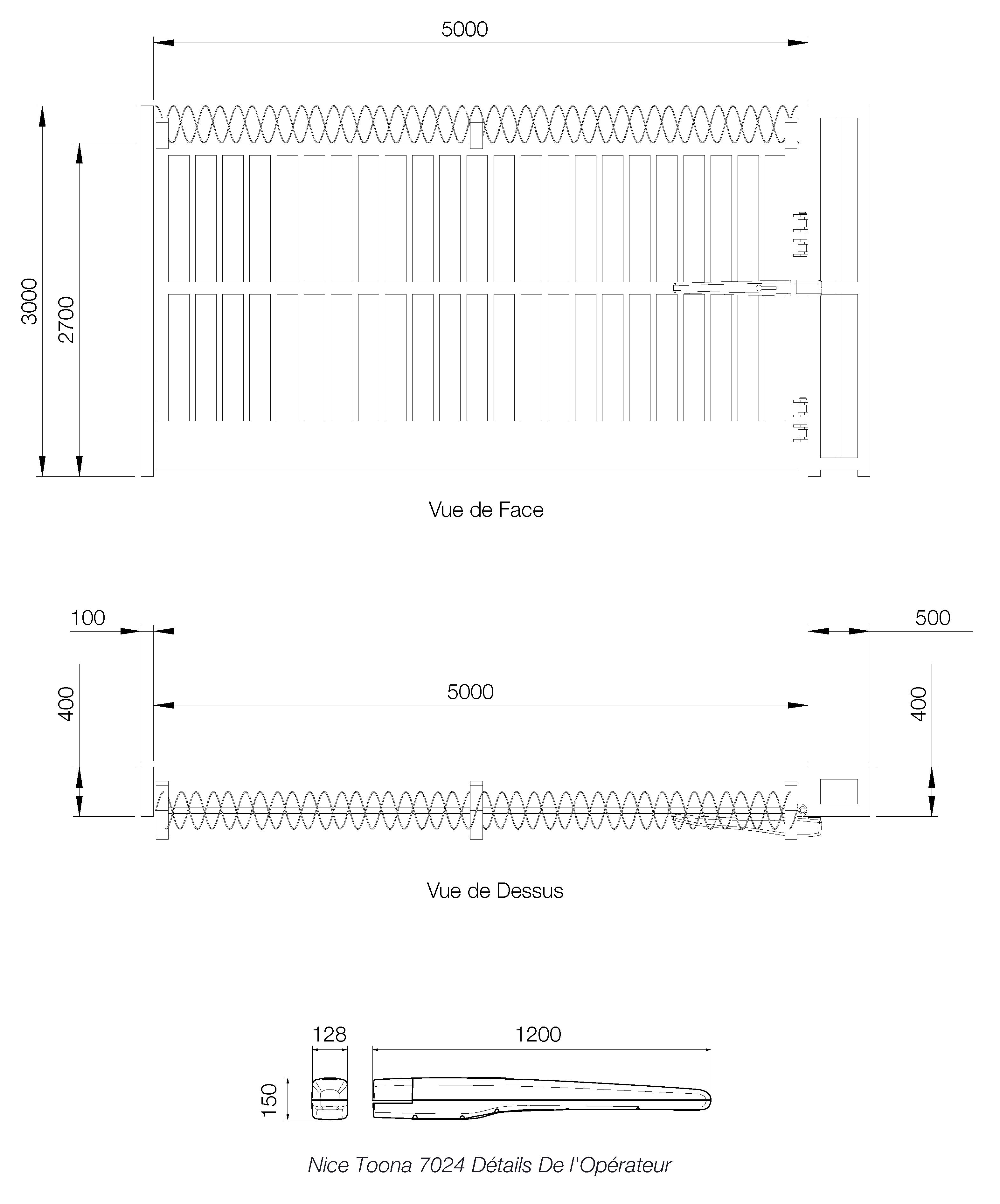 | ACCESSOIRES | Cellule photoélectrique de sécurité (sur les poteaux), touche de commande, lumière clignotante, télécommander |