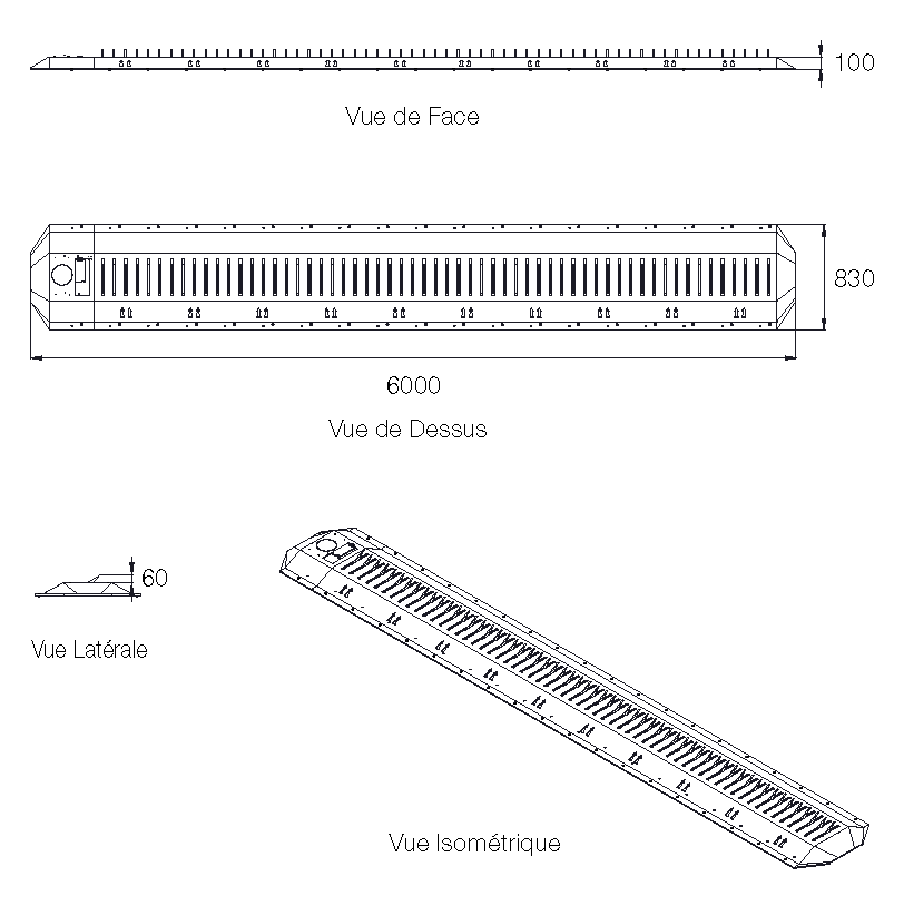 | DIMENSIONS (en mm) | 6000 x 830 |