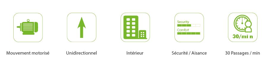 L'aile du portillon est automatiquement ouverte lorsque le faisceau du capteur de cellule photoélectrique est interrompu par un passager