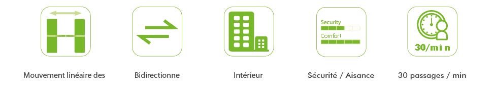 Polyuréthane de 25 mm d'épaisseur avec carcasse en acier combiné avec du plexiglas intérieur de 15 mm pour le passage des personnes à mobilité réduite |