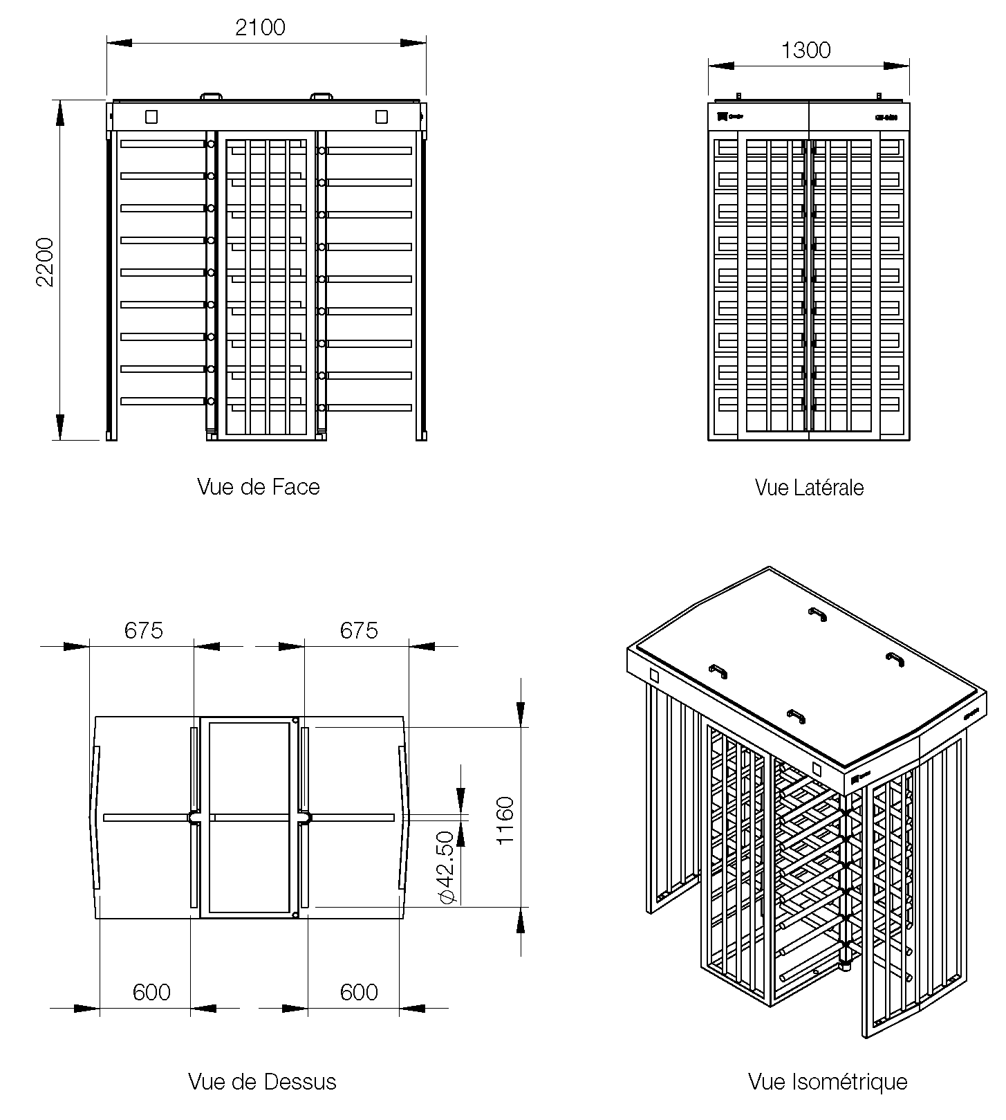 DIMENSIONS (mm) 2100 x 1300 x 2200 (LxLxH)