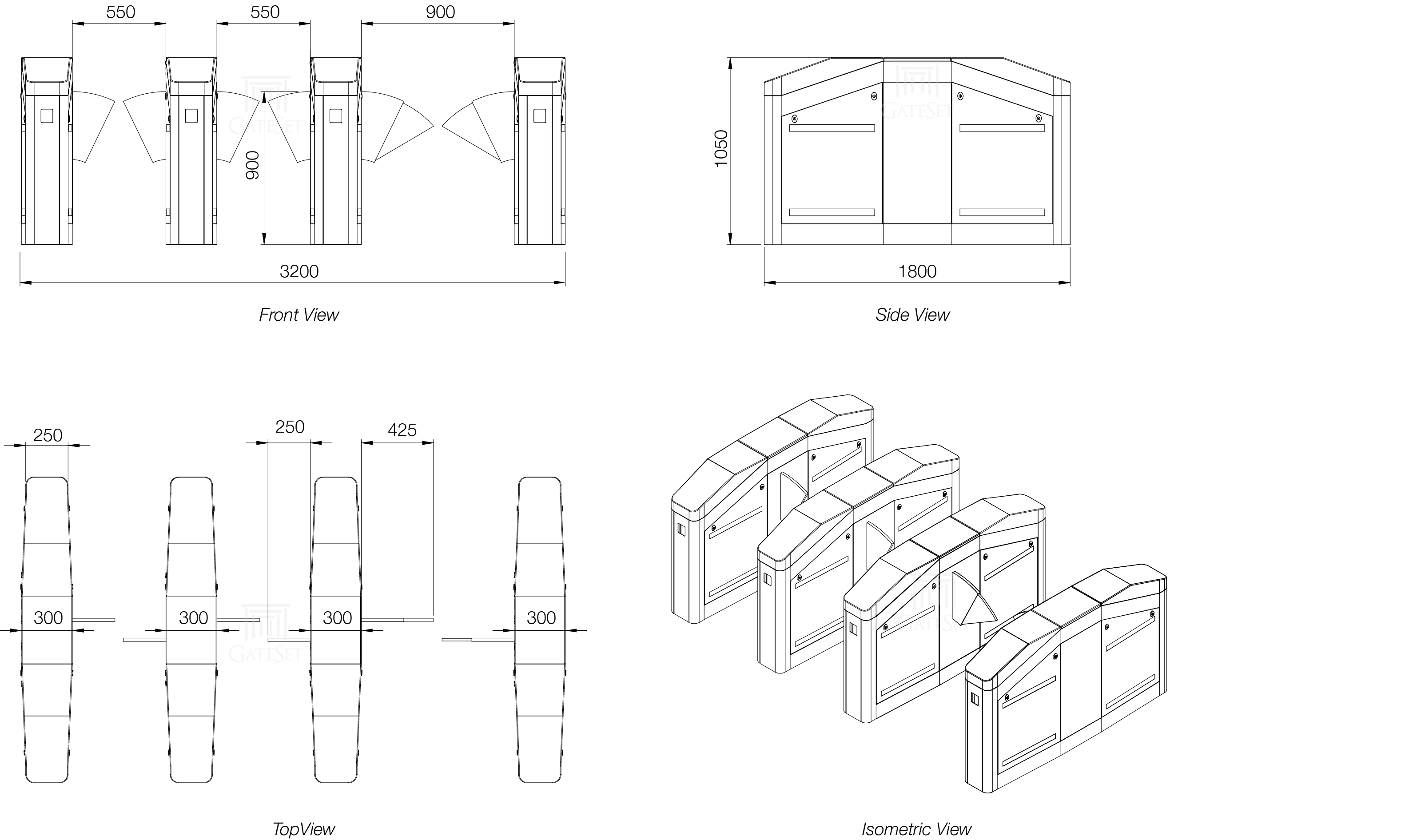550 mm (Standard Passage), 900 (Disabled Passage) |