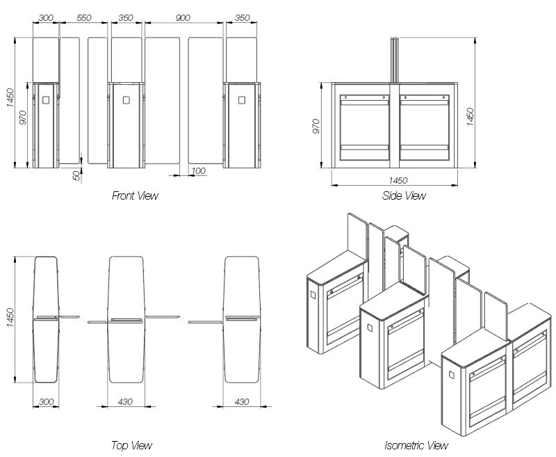 550 mm (Standard Passage), 900 (Disabled Passage) |