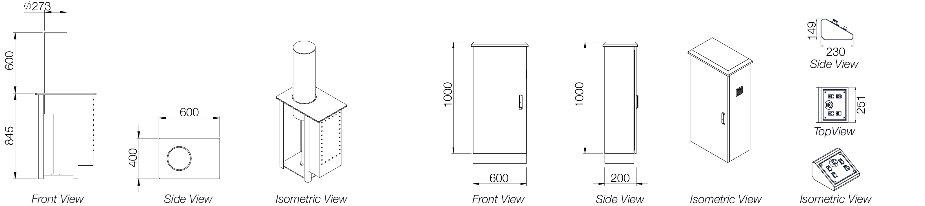 * Above cabinet measurements are for an outdoor cabinet for standard three group configuration. Subject to change depending on design or project needs without prior notice