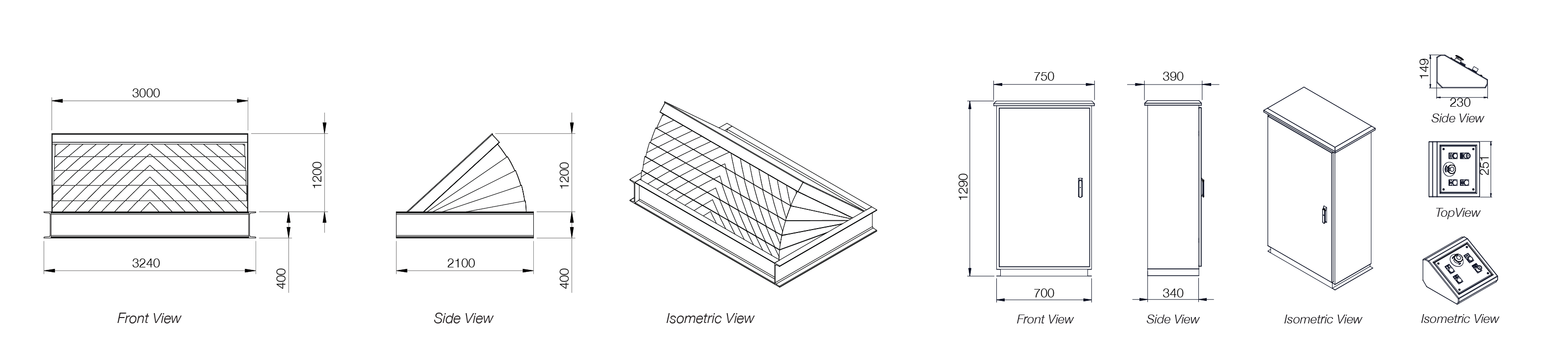 * Dimensions are given for 3000 mm Blocking Width,1200 mm Obstacle Height and Control Cabinet with Standard Configuration.