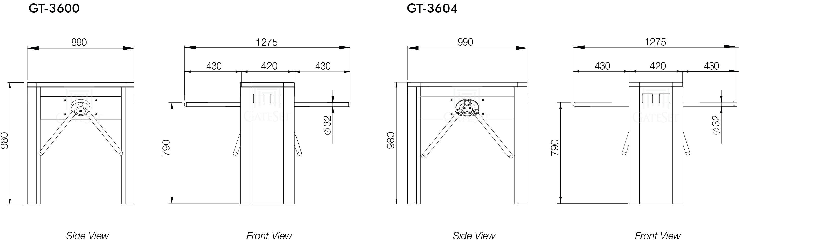 | GT-3604: 420 x 890 x 980 (WxLxH) | |