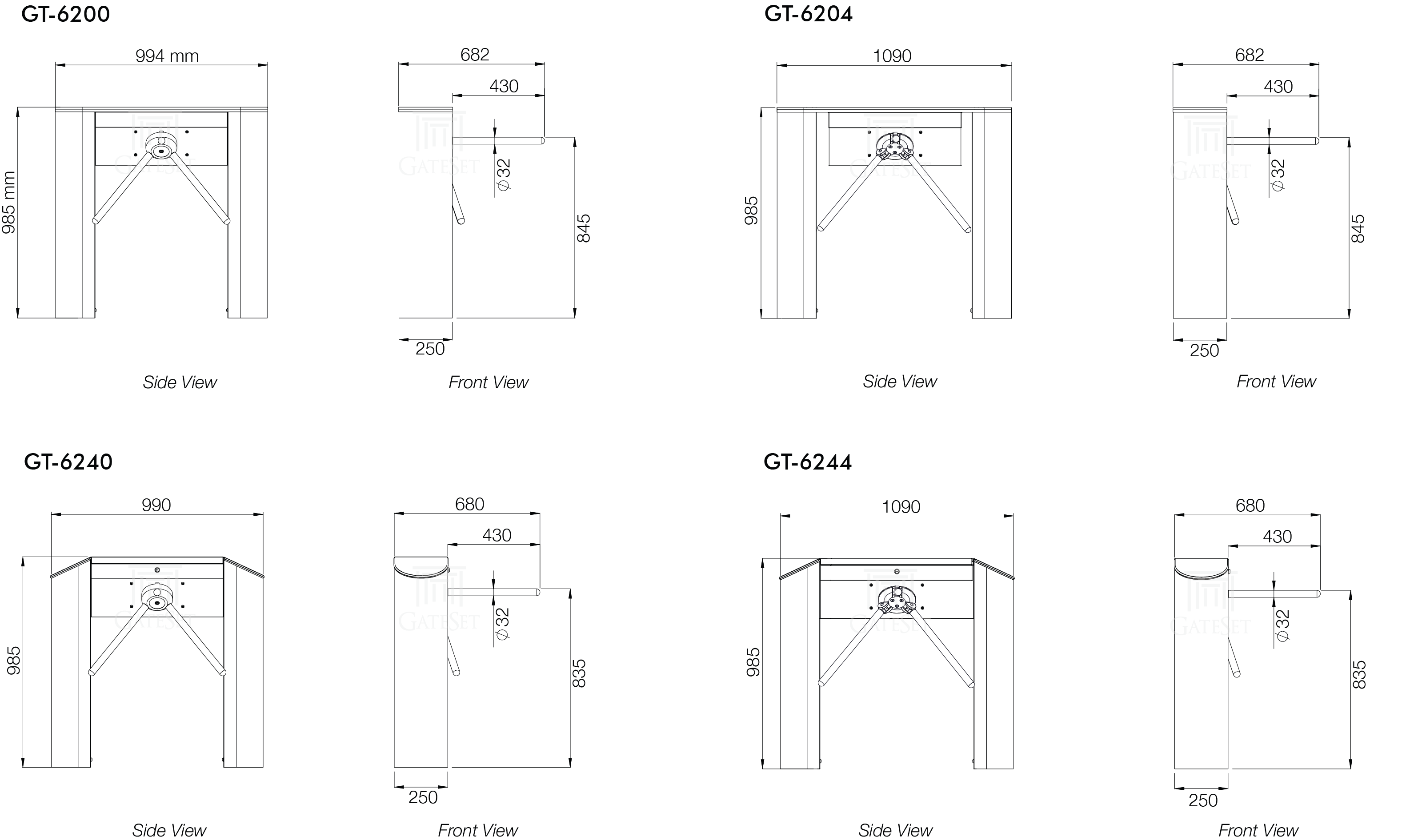 | GT-6204: 250 x 1090 x 985 (WxLxH) | |