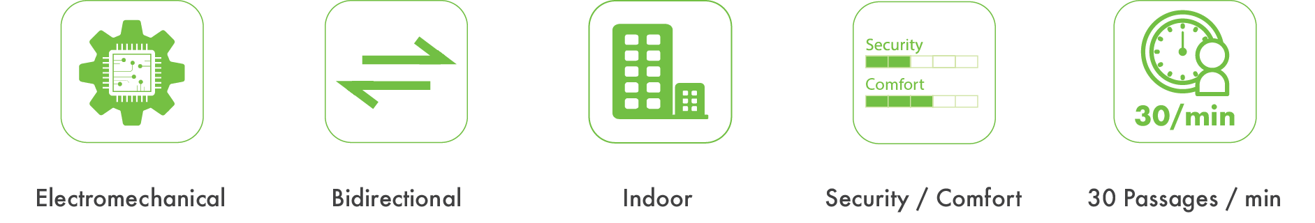 | ACCESS CONTROL | Automatic access granting, optical sensors provide access signal to the |
