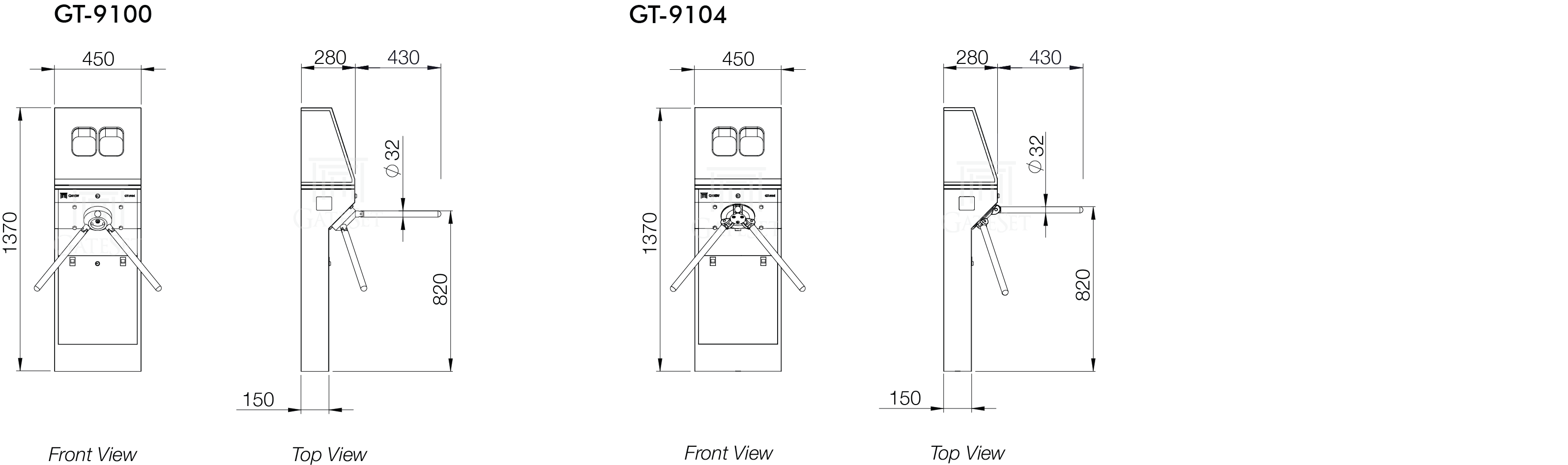 GateSet Special Line GT-9100 Series Waist Height Hygiene Trio Turnstiles are designed for disinfection both hands before entering where the hygiene is mandatory. Gateset GT-9100 Series Hygiene Turnstiles are ideal solution for the areas such as; food production, laboratories, or any specially designated facilities. Before entering to the designated area, gate sprays 3-5 ml alcohol based sanitizer on both hands at the same time and thanks to integrated sensors, it detects automatically when disinfection has been completed, then unlocks the arms automatically to authorize passage. Customized solutions are available depending on project requirement or installation site.