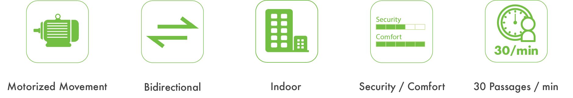 With motorized function in both directions, GateSet Exclusive Line GV-5000 Series Swing Gate Turnstiles provide an alternative way of regulating pedestrian traffic in access points which require an elegant design and robustness against high frequency usage. GV-5000 Series is compatible with international wheelchair standards thanks to passage width provided up to 90 cm. Its 15 mm thick Plexiglass swing arm provides safety against breaking while maximizing robustness. GV-5000 Series is an ideal option for access control points with high aesthetic value and a requirement for budget-friendly solution.