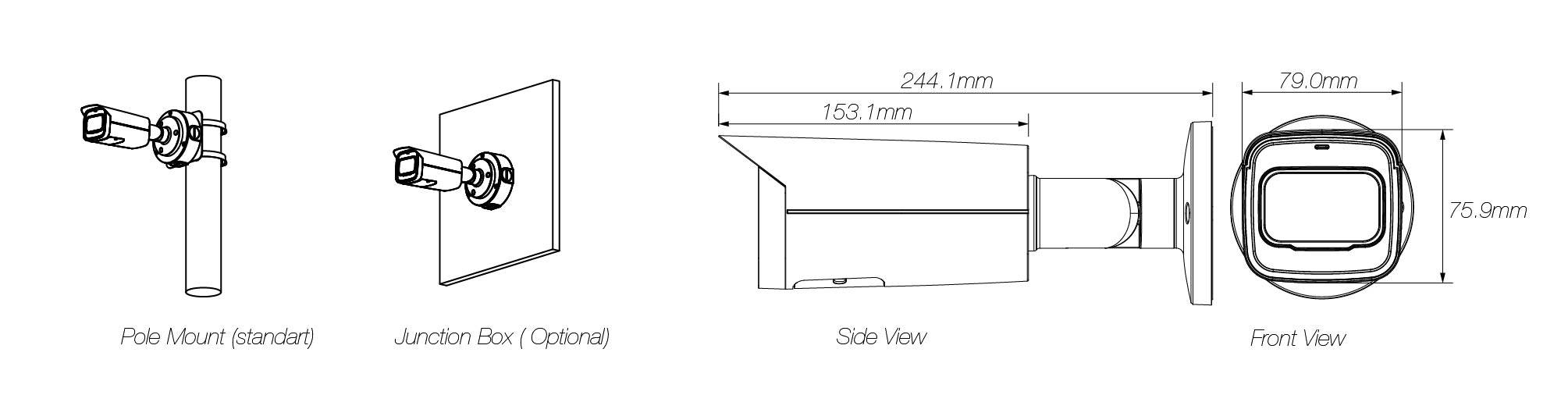 In terms of camera component, PRS3500 Series are brand or model independent. The system is compatible with all IP cameras which feature Real Time Streaming Protocol. In standard configuration, PRS3500 comes with 2MP Lite AI IR Vari-focal Bullet Network Camera.